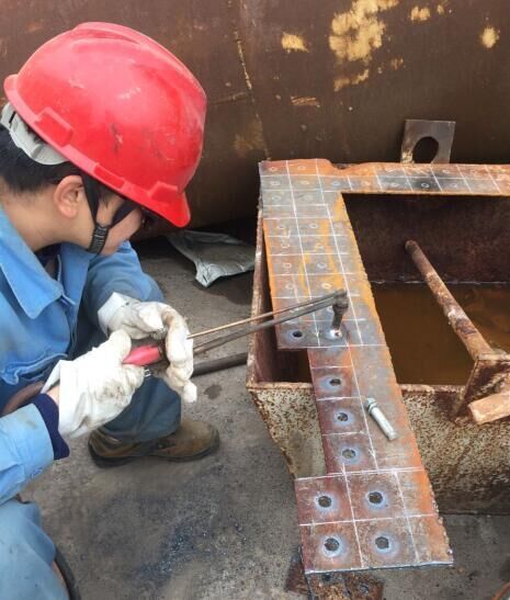 猶記4月間,郭雨宏師傅帶領(lǐng)胡建平和鄭武博為6#爐更換打字架——只見在郭師傅的指揮下,行車不斷將新打字架起吊、落下,對打字架的安裝位置進行著精細調(diào)整,不知道反復(fù)了多少遍,終于聽到郭師傅的那聲“好!”緊接著就是焊接。小胡和小鄭輪流上陣,戴著焊接專用的“面具”瞄準焊接位置后就“開火”——登時,火花四濺!耀眼的白光真應(yīng)了網(wǎng)絡(luò)上流傳的“亮瞎眼”。焊接結(jié)束了,他們的衣服上也留下了火花光顧后的紀念。所以,如果看到他們穿著滿布小洞紗網(wǎng)似的衣服,請別驚訝,都是焊接時飛迸的火星子留的記號!