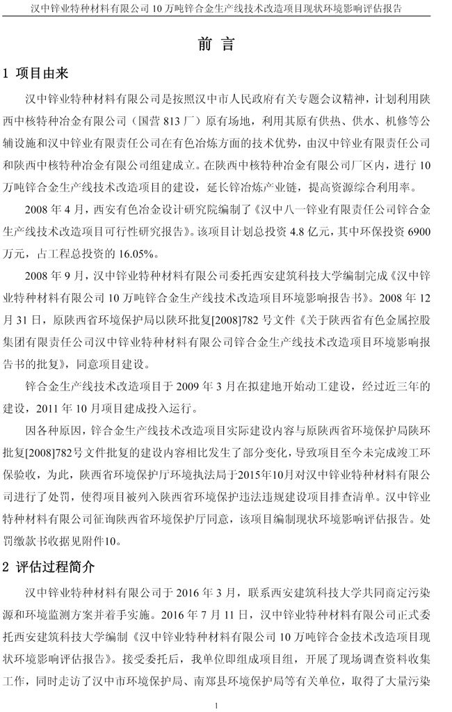 項目實施單位:漢中鋅業有限責任公司 評估報告編制單位:西安建筑科技大學