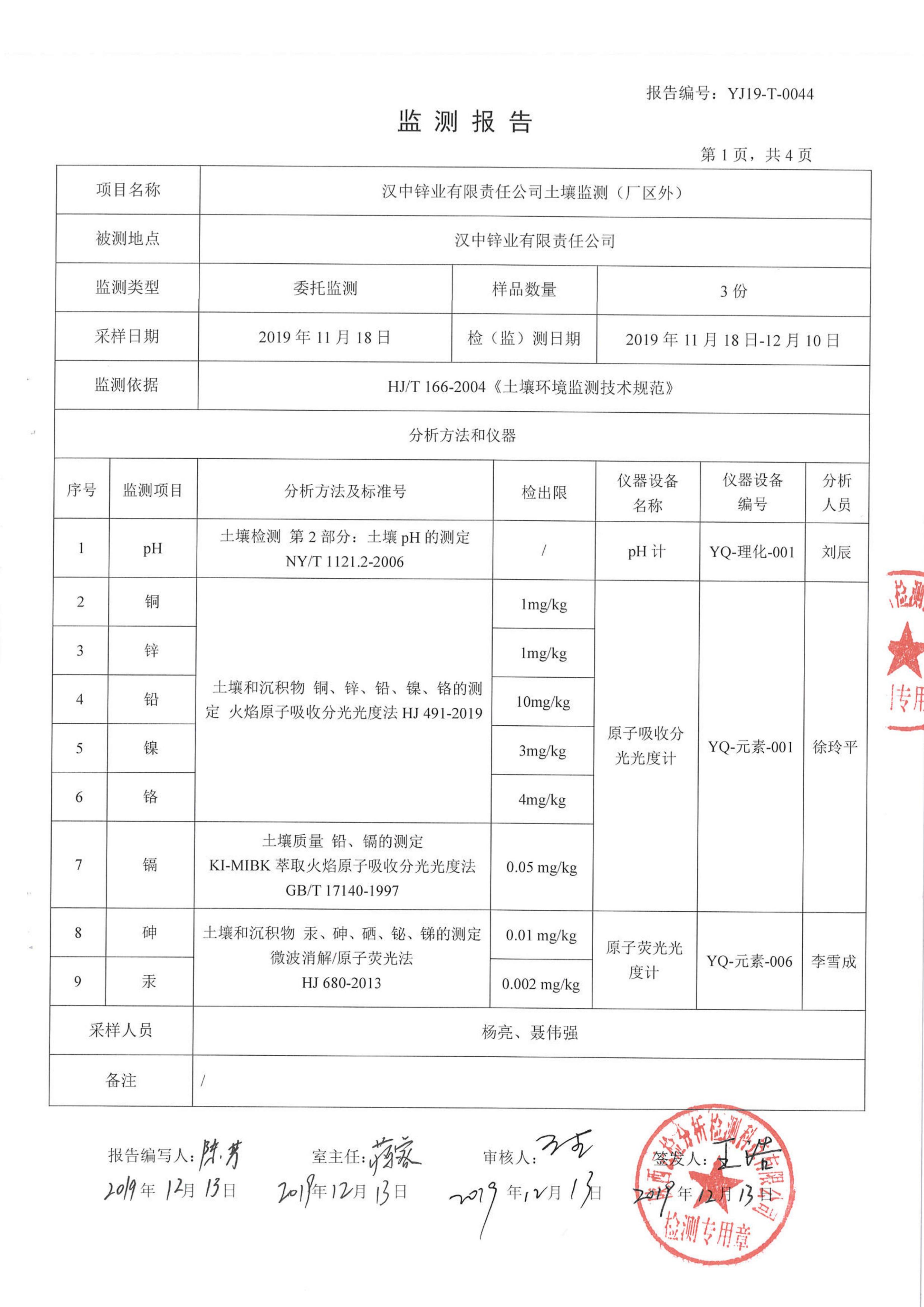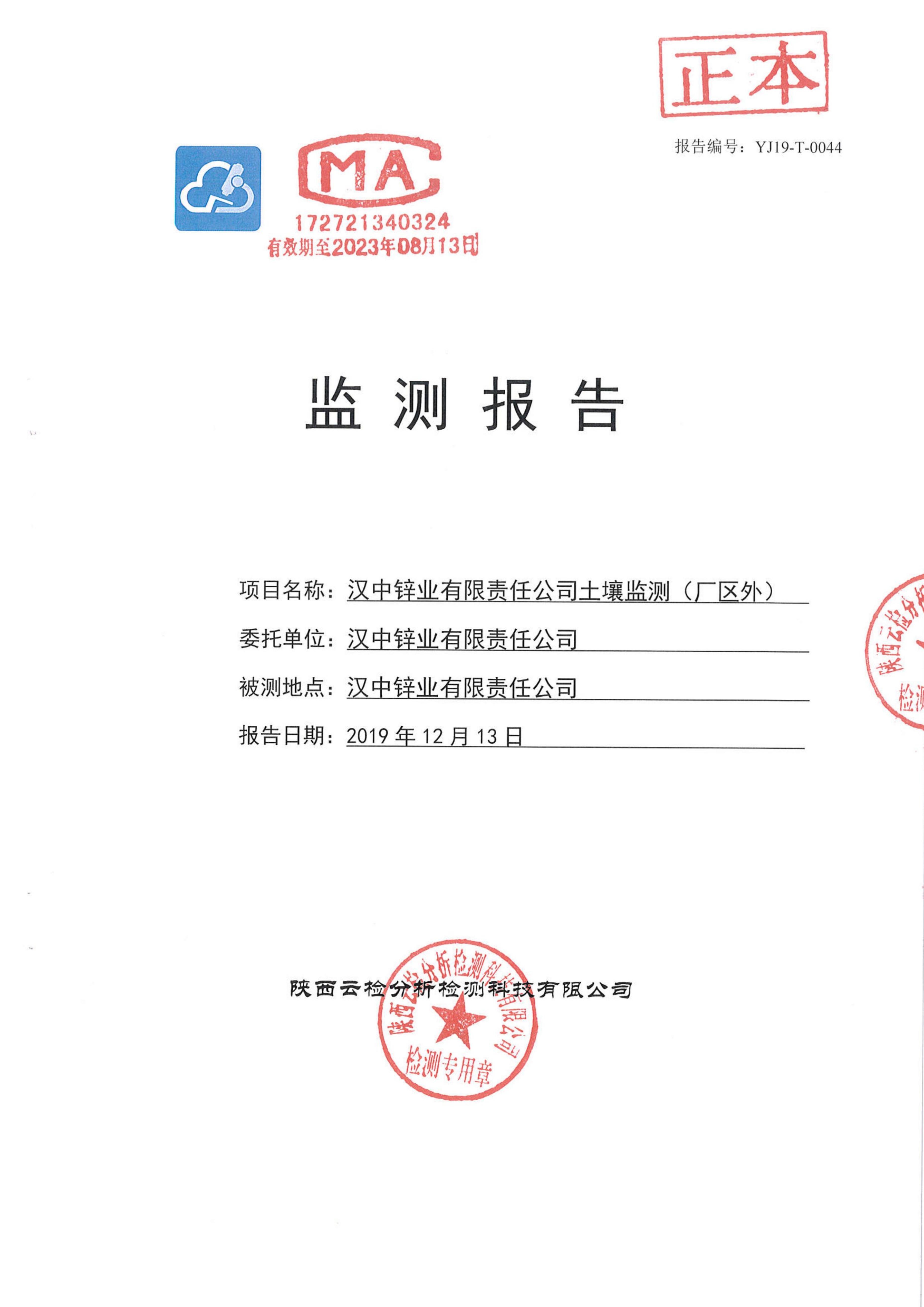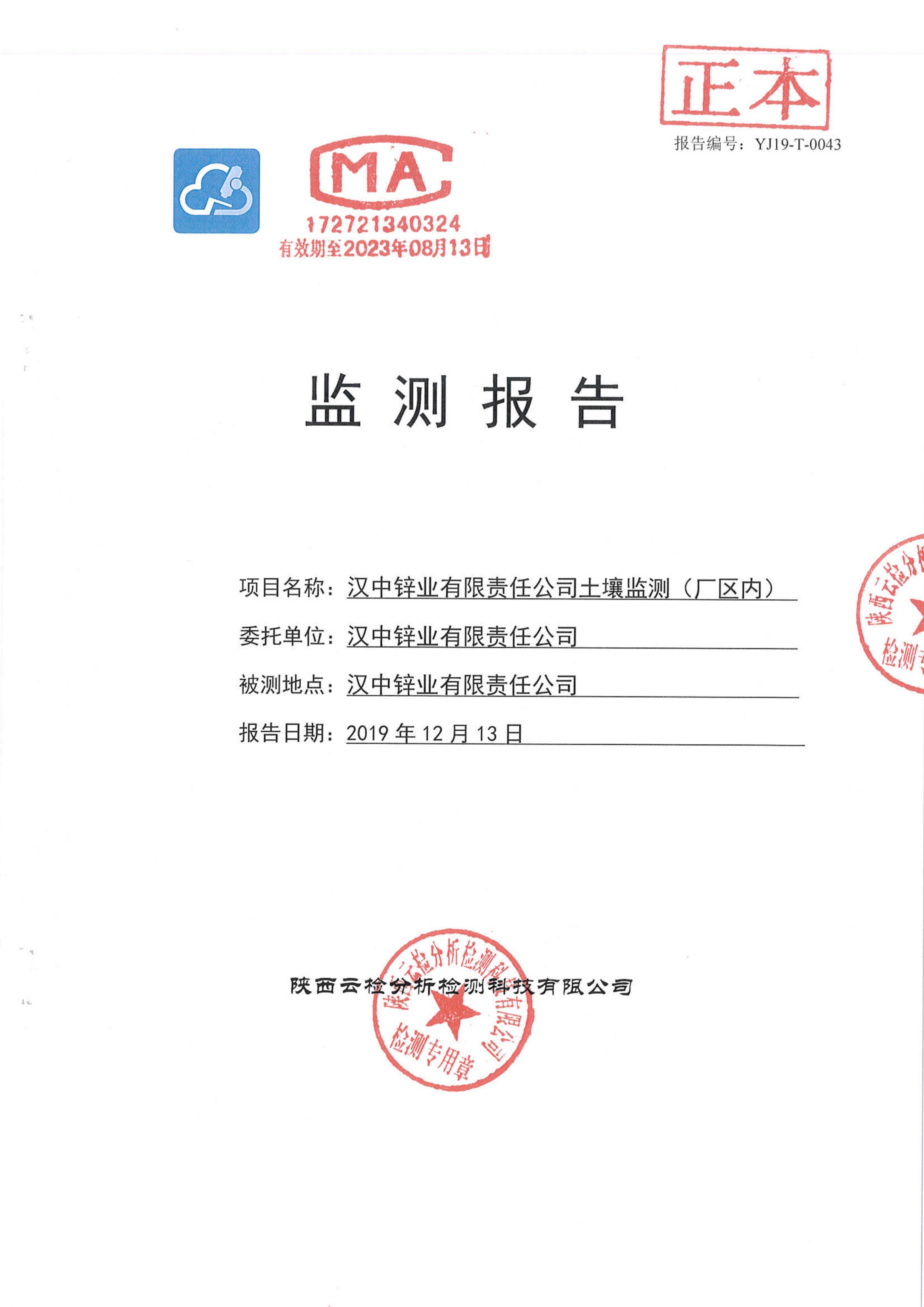 漢中鋅業有限責任公司2019年度土壤自行監測公示